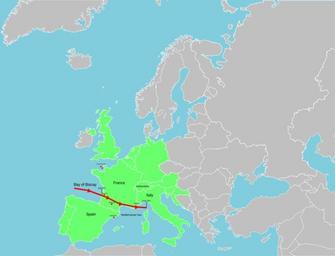 Keywords: January 2009 Bay of Biscay storm tracker.svg A map of Europe showing the location of the January 2009 Mediterranean storm The red line shows the track of the storm Self-made losely based upon http //newsimg bbc co uk/media/images/45410000/gif/_45410013_fra_spa_storm_466_4 gif BBC map but not a derivitive work 2009-01-25 Jolly Janner Cropped bitmap for article use Klaus storm