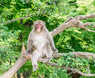 Keywords: japan arashiyama kyoto monkey park monkey sitting tree japanese forest travel monkey nature green landscape outdoor