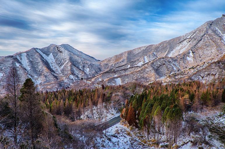 Keywords: japan aso asahi volcano sun kumamoto light woods tunnel forest autumnal leaves mountain hdr