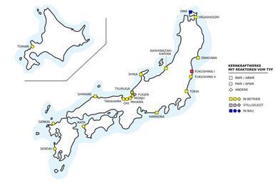 | Keywords: Japan atomic power plants de.svg en Nuclear power plants in Japan de Atomkraftwerke in Japan Unterschiedliche Symbole weisen auf den Reaktortyp des Kraftwerks hin 1 BWR/ABWR - Boiling Water Reactor dt Siedewasserreaktor bzw Advanced Boiling Water Reactor 2 PWR/APWR - Pressurized water reactor dt Druckwasserreaktor und Advanced Pressurized Water Reactor 3 Andere - Bspw Advanced Thermal Reactor Fugen oder Fast Breeder Reactor Monju <br /> Farben geben Auskunft über den Zustand des bzw der Reaktoren Gelb - In Betrieb Grau - Stillgelegt alle Reaktoren des Kraftwerks Blau - In Bau befindlich nur neue Kraftwerke; Reaktorerweiterungen bei bestehenden Atomkraftwerken werden nicht berücksichtigt <br /> Hinweise Das Kernkraftwerk Monju 1 Reaktor ist in Testbetrieb à ber die Reaktoren des beschädigten Fukushima-I-Kraftwerks gibt es momentan keine abschließenden Erkenntnisse Die Kühlsysteme der Reaktorblöcke 1 bis 3 sind schwer beschädigt Own Information source http //cnic jp/english/data/index html Citizens' Nuclear Information Center of Japan January 2011 kbegemot 2011-03-22 Cc-zero Nuclear power plants in Japan Nuclear power plant maps |