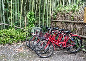 Keywords: japan bamboo forest arashiyama kyoto bikes bicycles colorful trees japanese asia cycling outdoor travel transportation person transport activity
