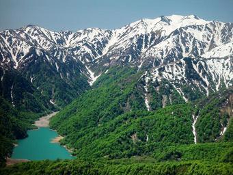 Keywords: japan mountains snow forest trees valley ravine lake water nature outside