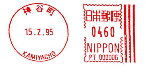 Keywords: Japan stamp type H5.jpg en Meter stamp catalog image Japan type H5 Richard Stambaugh Richard Stambaugh 2011-10-24 Meter stamps of Japan