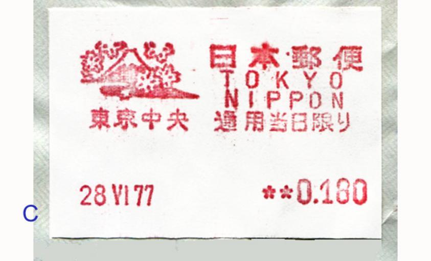 Keywords: Japan stamp type PO6C.jpg en Meter stamp catalog image Japan type PO6C Richard Stambaugh Richard Stambaugh 2011-10-24 Meter stamps of Japan