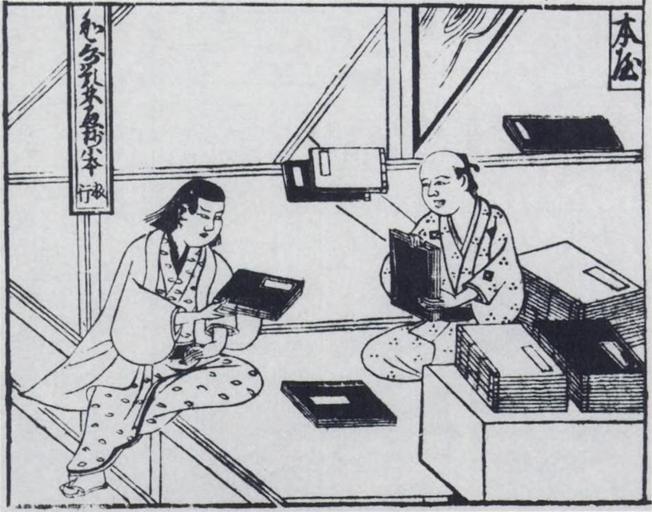 MAKE A MEME View Large Image Japanese bookseller from Jinrin kinmo zui.jpg en Bookseller from the Jinrin kinmo zui 人 訓蒙図彙; An Illustrated Encyclopedia of Humanity 1690 National Diet Library Tokyo object history credit line accession number Berry Mary ...