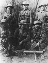 | Keywords: soldiers 52nd battalion 52ndbattalion first world war firstworldwar wwi infantry japanese canadians japanesecanadians somme canadian expeditionary force canadianexpeditionaryforce 3rd canadian division 3rdcanadiandivision japanese canadian soldiers japanesecanadiansoldiers military army ontario canada history blackandwhite groupshot people monochrome outdoor black and white Date: 1916 Description: Several soldiers of Japanese descent served with the 52nd Bn, No. 2 Section, 9th Platoon, C Company. Here, soldiers pose for a photo while waiting for instructions in an assembly area in Somme, France. Front row (L-R): Kanezo Nagao, Yasuzo (George) Shoji, Yoichi Kamakura; Back row (L-R): Sakutaro Murta, Kijiro Tokunaga, Takehiko Tokunaga. Kamakura and the two Tokunagas were killed in battle. Yasuzo (George) Shoji and Yoichi Kamakura are both mentioned for their bravery in the field in the 52nd Bn. Honors and Awards Ledger (which is part of the Museum's archival collection). (Photo credit: Toronto Japanese Canadian Culture Centre) Date: 1916 Description: Several soldiers of Japanese descent served with the 52nd Bn, No. 2 Section, 9th Platoon, C Company. Here, soldiers pose for a photo while waiting for instructions in an assembly area in Somme, France. Front row (L-R): Kanezo Nagao, Yasuzo (George) Shoji, Yoichi Kamakura; Back row (L-R): Sakutaro Murta, Kijiro Tokunaga, Takehiko Tokunaga. Kamakura and the two Tokunagas were killed in battle. Yasuzo (George) Shoji and Yoichi Kamakura are both mentioned for their bravery in the field in the 52nd Bn. Honors and Awards Ledger (which is part of the Museum's archival collection). (Photo credit: Toronto Japanese Canadian Culture Centre) |
