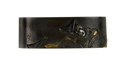 | Keywords: Japanese - Fuchi with Minamoto no Mitsunaka Dreaming - Walters 51946.jpg Minamoto no Mitsunaka 912-997 was considered the best archer in Japan during his lifetime Once while sleeping he dreamed that Shôka Ch Jie Hwa Chieh Hwa the daughter of the Divine Archer of China Yôyuki Ch Yang Yeoki Yang Yeo-ki materialized to present him with her father's bows and arrows He appears here with his head bowed in sleep Shôka is on the matching kashira Walters 51 947 date shibuichi gold cm 3 7 accession number 51 946 30314 William T / Henry Walters Collection Baltimore date and mode of acquisition unknown Walters Art Museum Henry Walters Acquired by William T or Henry Walters none place of origin Japan Walters Art Museum license Fuchi in the Walters Art Museum Media contributed by the Walters Art Museum needs category review |