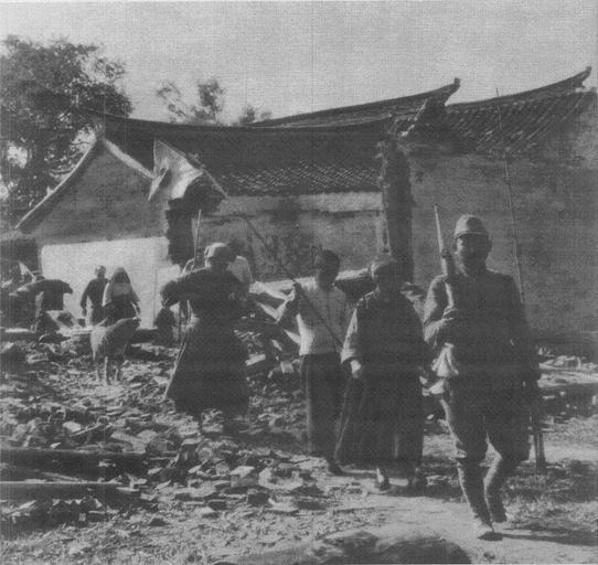 Keywords: Japanese guard in Baoshan01.JPG en In the morning a Japanese soldier escorting Chinese farmers from their home to their fields in Baoshan County Jiangsu Province today Baoshan District Shanghai Taken on October 14 1937 ja 日 兵に護られて野良仕事に出かける中国の農民 江蘇 山 盛家橋部落 昭和12年10 14日 China Incident Photograph Album Volume 2 Shina Jihen Shashin Zenshu Vol 2 published in 1938 by Asahi Shimbun 支那事変写 全集<中>( 日新聞 昭和13年発行) Sweeper tamonten <span class signature-talk >talk</span> 2008-04-27 PD-Japan-oldphoto Japan's assistance in occupied China Complete Pictorial of the China Incident Baoshan District |