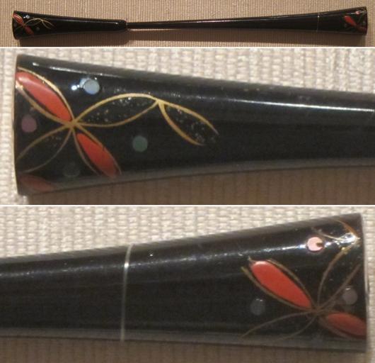 | Keywords: Japanese hair pin, black lacquer, red lacquer, and mother-of-pearl, Edo or Taisho, Honolulu Museum of Art.JPG en Japanese hair pin black lacquer red lacquer and mother-of-pearl Edo or Taishō Honolulu Museum of Art own Hiart photo 2012 Japanese hair ornaments in the Honolulu Museum of Art Hair pins Kanzashi Honolulu Lacquerware of Japan in the Honolulu Museum of Art Hair pins Cc-zero | ||||