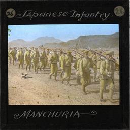 | Keywords: Japanese Infantry, Manchuria, ca. 1882-ca. 1936 (imp-cswc-GB-237-CSWC47-LS8-026).jpg en <br> Japanese Infantry Manchuria ca 1882-ca 1936 Photograph of a troop of Japanese Infantry marching through a deserted area All of the soldiers are in full uniform with rifles over their shoulders There are hills visible in the background ; This belongs to a series of Church of Scotland Foreign Missions Committee lantern slides relating to the Scottish missionary Dugald Christie Dugald Christie was born in Glencoe in Scotland and studied medicine under the auspices of the Edinburgh Medical Missionary Society In 1882 along with his first wife Elizabeth he went to Manchuria to work as a medical missionary of the United Presbyterian Church of Scotland He worked initially in Newchang and later moved to the capital of Mukden where he opened Manchuriaas first hospital in 1884 In 1912 he established Mukden Medical College Dugald Christie retired in 1923 and died in Edinburgh in 1936 Photographer Unknown Filename imp-cswc-GB-237-CSWC47-LS8-026 tif Coverage date 1882/1936 Part of collection International Mission Photography Archive ca 1860-ca 1960 Geographic subject region Manchuria Type images Part of subcollection Photographs from the Centre for the Study of World Christianity University of Edinburgh U K ca 1900-ca 1940s Repository name Centre for the Study of World Christianity Archival file impaunpub_Volume7/1689 url Repository address The University of Edinburgh School of Divinity New College Mound Place Edinburgh EH1 2LX United Kingdom Geographic subject country China; Japan Format aacr2 1 lantern slide 8 x 8 cm Geographic subject continent Asia Rights Contact the repository for details Part of series Dugald Christie LS8 Repository email divinity-CSWC ed ac uk Subject lcsh Keyword Soldiers Date created 1882/1936 Publisher of the digital version University of Southern California Libraries Subject aat genre group portraits Format aat lantern slides Legacy record ID impa-m69133 Access conditions http //www ed ac uk/schools-departments/divinity/research/centres/world-christianity/collections-resources File GB 237 CSWC47/LS8/26 1882/1936 author http //digitallibrary usc edu/cdm/ref/collection/p15799coll123/id/64808 PD-old-70-1923 Magic lantern images Images from USC Digital Library uploaded by Fæ International Mission Photography Archive ca 1860-ca 1960 Military history of Japan Soldiers of Japan Columns people History of Manchuria |