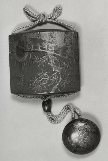 Keywords: Japanese - Inro with Drums and Pipes for Classical Bugaku Dance - Walters 67372.jpg A carved wood manju netsuke with a gold lacquer hare's-foot fern shinobugusai A standard wood and gold ground two compartment inro A maple tree which the upper part of a large drum and a curtain used in Bugaku are beneath On the reverse a sho or pan pipe and three maple leaves The design in takamakie and hiramakie in gold with some red for the maple leaves and silver lacquer A background of greyish transparent lacquer on the reverse and top to allow the wood grain to appear A plain interior The cord channels are internal middle Other date century 19 Edo; Meiji gold lacquer wood inro cm 6 7 2 3 accession number 67 372 23332 William T / Henry Walters Collection Baltimore date and mode of acquisition unknown Walters Art Museum Henry Walters Acquired by William T or Henry Walters none place of origin Japan Walters Art Museum license Inro in the Walters Art Museum Bugaku |