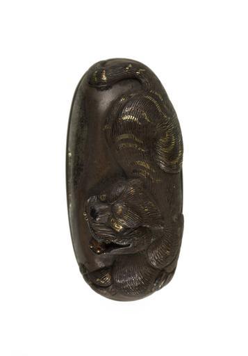 | Keywords: Japanese - Kashira with a Tiger - Walters 511015.jpg A tiger is shown crouched and roaring The tiger is executed in silver with gilded stripes He has a copper mouth with gold teeth and a shakudo nose date silver gilt cm 3 4 accession number 51 1015 4456 William T / Henry Walters Collection Baltimore date and mode of acquisition unknown Walters Art Museum Henry Walters Acquired by William T or Henry Walters none place of origin Japan Walters Art Museum license Kashira in the Walters Art Museum Media contributed by the Walters Art Museum needs category review |