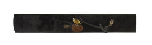 | Keywords: Japanese - Kozuka with Branch and Persimmon - Walters 51761.jpg A persimmon is shown hanging on a branch Persimmons are associated with autumn The reverse of the kozuka has a diagonal gold inset date shakudo copper gold cm 9 accession number 51 761 8244 Henry Walters Baltimore date and mode of acquisition unknown Walters Art Museum Henry Walters Acquired by Henry Walters none Sticker - red trellis 84 place of origin Japan Walters Art Museum license Tosogu Japanese sword fittings in the Walters Art Museum Media contributed by the Walters Art Museum needs category review |