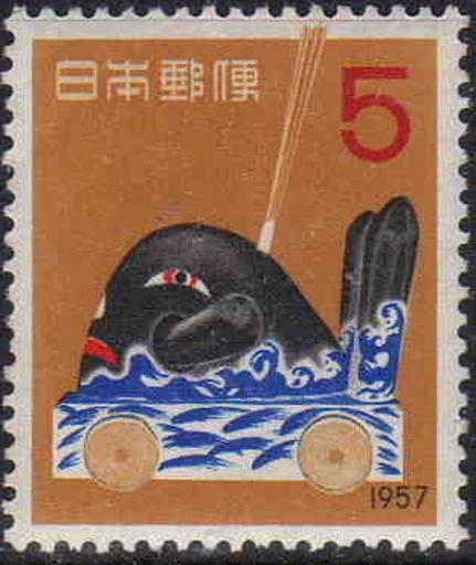 | Keywords: Japanese New Year Stamp 1957.JPG en New Year stamp in 1957 ja 昭和32年年 切手 描かれているのは長崎 の玩具だんじりである personal stamp collection 日 国郵政 1956-12-20 PD-Japan Stamps of Japan 1956 New Year stamps Whales on stamps Animals on stamps to be categorised by country |