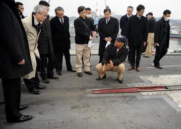 | Keywords: Japanese police tour USS George Washington 120222-N-QQ884-107.jpg en Ensign Derrick Ingle assistant public affairs officer aboard the nuclear-powered aircraft carrier USS George Washington gives members of the Kanagawa Prefectural Police Headquarters a tour of the ship's flight deck George Washington returned to her forward-operating port of Commander Fleet Activities Yokosuka Nov 22 after navigating more than 50 000 nautical miles across the western Pacific to operate with more than a dozen different nations during her nine-week patrol George Washington is the Navy's only full-time forward-deployed aircraft carrier ensuring security and stability in the western Pacific Ocean U S Navy photo by Mass Communication Specialist 3rd Class Kaitlyn R Breitkreutz 2012-02-22 Canadian Forces MS Kaitlyn Breitkreutz https //www dvidshub net/image/529821 120222-N-QQ884-107 2012-02-23 03 26 YOKOSUKA JP PD-USGov-Military-Navy Fleet Activities Yokosuka USS George Washington CVN-73 Images from DoD uploaded by Fæ |