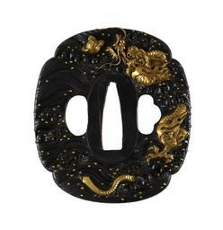 | Keywords: Japanese - Tsuba with Dragon and Waves - Walters 5112542.jpg A gold dragon is depicted swimming through waves clutching a tide controlling jewel Dragons are associated with water and frequently depicted in waves This is part of a mounted set century 18 19 Edo shakudo gold cm 7 5 accession number 51 1254 2 2609 Henry Walters Baltimore date and mode of acquisition unknown Walters Art Museum Henry Walters Acquired by Henry Walters none place of origin Japan Walters Art Museum license Tsuba in the Walters Art Museum Media contributed by the Walters Art Museum needs category review |