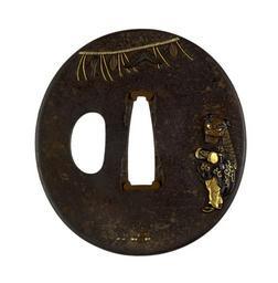 | Keywords: Japanese - Tsuba with a New Year's Lion Dancer - Walters 51365.jpg The motifs of this tsuba illustrate traditional New Year's customs On the right is a man dressed as a lion who performs a celebratory dance At the upper left is a decorative rope shimenawa including pine boughs which are hung on homes during the New Year's season At the lower edge on the reverse is a small table with traditional offerings date iron gold copper cm 6 5 accession number 51 365 12126 Henry Walters Baltimore date and mode of acquisition unknown Walters Art Museum Henry Walters Acquired by Henry Walters none place of origin Japan Walters Art Museum license Tsuba in the Walters Art Museum Reliefs of dancers on Japanese sword fittings Media contributed by the Walters Art Museum needs category review |
