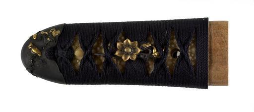 | Keywords: Japanese - Tsuka with Flowers Birds - Walters 5112823b.jpg Each of the menuki is in the shape of a flower and leaves On the kashira an owl sits in branches and a sparrow is in flight This is part of a mounted set 1st half Other date century 19 late Edo silver gold shakudo sentoku ray skin cm 11 1 accession number 51 1282 3b 79534 Henry Walters Baltimore date and mode of acquisition unknown Walters Art Museum Henry Walters Acquired by Henry Walters none place of origin Japan Walters Art Museum license Tsuka in the Walters Art Museum Media contributed by the Walters Art Museum needs category review Media contributed by the Walters Art Museum needs artist review |