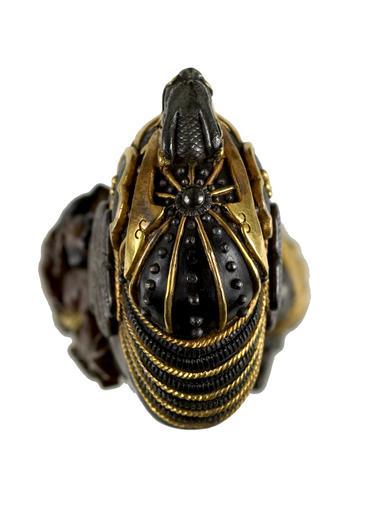 | Keywords: Japanese - Tsuka with Sumo Wrestlers and Helmet - Walters 5112383B - Detail A.jpg This tsuka is made entirely of metal with the menuki attached directly to hilt rather than held in place with wrapped cord One menuki is in the shape of two sumo wrestlers One wrestler has lifted the other off his feet On the reverse is the referee The kashira is shaped like a warrior's helmet This is part of a mounted set 2nd half Other date century 19 Edo-Meiji silver gold shakudo copper wood cm 10 5 accession number 51 1238 3B 79586 William T / Henry Walters Collection Baltimore date and mode of acquisition unknown Walters Art Museum Henry Walters Acquired by William T or Henry Walters none place of origin Japan Walters Art Museum license Tsuka in the Walters Art Museum Media contributed by the Walters Art Museum needs category review |