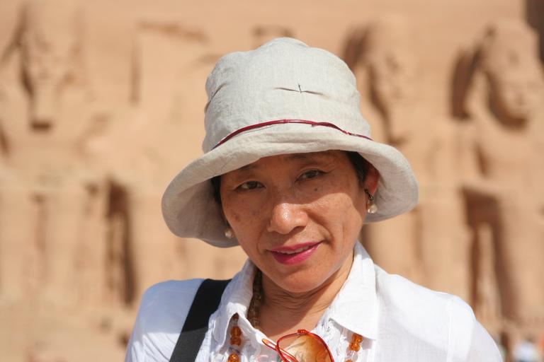 Keywords: japanese woman egypt aswan abu simbel nile river temple ruins ancient blue sky pharaoh folk world heritage site fund raising donation split unesco project aswan high dam antomasako