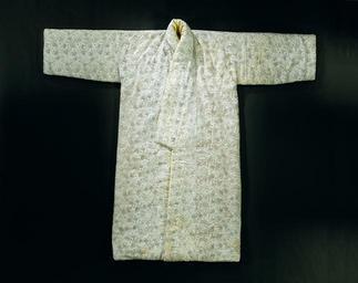 | Keywords: Japonsche rock van zijde met grijsblauw fond waarop rijstbundels en bloemtakken in rood met groen en rood met blauw, gevuld met zijden watten en gevoerd met gele zijde-Rijksmuseum BK-BR-725-A.jpeg accession number BK-BR-725-A Anonymous credit line GWToolset Rijksmuseum nl Japonsche rock van zijde met grijsblauw fond waarop rijstbundels en bloemtakken in rood met groen en rood met blauw gevuld met zijden watten en gevoerd met gele zijde Model deze jas is gelijk aan het standaardpatroon van de Japanse kosode met uitzondering van de shawlkraag die hier niet is samengesteld uit overgebleven stukjes stof maar als één lange strook is geknipt Het model van de mouwen lijkt op het eerste gezicht het meest afwijkend maar hier zijn de afhangende kimonomouwen een kwartslag gedraaid en opengeknipt De de originele kososdes volgt het patroon van de mouwen altijd dat van de panden maar hier staat het als gevolg van de vermaking er haaks op Een kosode wordt standaard gemakt uit een lap zijde van 10 5 m met een stofbreedte van ca 32 0 cm Voor deze japonsche rock is 10 54 m stof gebruikt met een breedte van 37 0 cm Versiering het patroon is in een verfijnde vorm van katagami techniek opgebracht Het basisprincipe van deze uitsparingstechniek is men legt uit moerbeibladeren gesneden stencils op de stof en verspreidt hierover een pap van gestoomd rijstmeel en -zemelen Het stencil wordt verwijderd zodat de pap op de stof kan drogen Hierna wordt de stof geheel ingesmeerd met een lijmachtige vloeistof uit sojabonen en wanneer dit is opgedroogd kan de kleur met een kwast worden opgebracht Tot besluit wordt de pap weggewassen waardoor uitgespaarde ongeverfde motieven overblijven Het patroon op deze jas is een meerkleurig repeterend motief waarvoor waarschijnlijk meer dan één stencil is gebruikt Aan de boven- en onderkant van een dergelijk stencil bevinden zich meestal twee gaatjes die het verplaatsen van het stencil bij een repeterend motief moeten vergemakkelijken Op deze stof zijn drie verschillende sorten punten te herkennen Dit kan duiden op het gebruik van drie stencils Dit was ook nodig om de drie verschillende kleuren op te brengen Vgl stencil in verzameling Von Siebold I nr 3448 IX k 68 Rijksmuseum voor Volkenkunde Leiden Label Line anoniem 1700 - 1750 Zijde en Serbian rock silk gown in gray blue and bundles of rice and flower branches in red with green and red with blue filled with silk wadding and lined with yellow silk Model This jacket is equal to the standard pattern of the Japanese Kosode with the exception of the shawl collar which is not composed of remaining pieces of fabric but here as a long strip The model of the sleeves seems at first sight the most different but here are the hanging kimono sleeves a quarter turn and cut open The original kososdes always follows the pattern of the sleeves to the body but here it is at odds Kosode is a piece of silk fabric of 10 5 m with a width of about 32 0 cm This gown is 10 54 m fabric used with a width of 37 0 cm Art the pattern is applied in a sophisticated form of katagami technique The basic principle of this technique is stencil cuts one explains mulberry leaves cut stencils on the fabric and spread about a porridge made from steamed rice flour and bran The stencil is removed so that the porridge on the fabric to dry Hereinafter the substance completely coated with a glue-like liquid from soya beans and when it has dried color is applied by brush Finally the surplus is washed away making recessed unpainted motives remain The pattern on this jacket is a multicolored repetitive motif which probably over a stencil is used At the top and bottom of such a stencil typically there are two holes which move the stencil in a repeating motif to facilitate On this matter are three different recognize types This may indicate the use of three stencils Cf stencil collection Von Siebold 3448 I IX k 68 National Museum of Ethnology Leiden geheel Lengte cm 156 0 zijde Width cm 37 0 exhibition history Institution Rijksmuseum silk ; silk object history Acquisition 1969 object type japonse rok PD-US PD-old Data and photography rights All data and all images made available through the API are either in the public domain or are subject to a CC0 license https //www rijksmuseum nl/en/api/terms-and-conditions-of-use cc-zero place of creation Japan; Nederland http //www rijksmuseum nl/collectie/BK-BR-725-A http //hdl handle net/10934/RM0001 COLLECT 346847 handle Japonsche rock van zijde met grijsblauw fond waarop rijstbundels en bloemtakken in rood met groen en rood met blauw gevuld met zijden watten en gevoerd met gele zijde Uploaded with GWToolset Rijksmuseum BK-BR-725-A http //www rijksmuseum nl/media/assets/BK-BR-725-A Images uploaded by Fæ Art of Japan in the Rijksmuseum Images from the Rijksmuseum Traditional clothes of Japan Silk clothing Museum Volkenkunde Leiden |