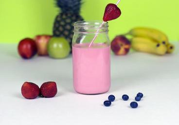 Keywords: jar drink smoothie pink strawberry blueberry banana apple peach pineapple diet health nutrition shake