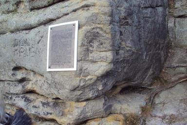 Keywords: Jarmilina skála.JPG cs Deska na skále břeh Máchova jezera own Zákupák 2014-02-08 Máchovo jezero Staré Splavy Plaques in Česká Lípa District