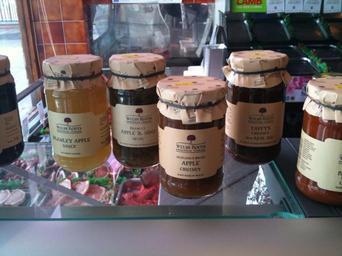 | Keywords: Jars of Welsh chutney and preserves.jpg en Selection of Welsh chutney and preserves for sale on a butcher's shop counter at Upper Killay Swansea in September 2010 own Vouliagmeni 2010/09 Food counters Cuisine of Wales Chutney Preserves September 2010 in Wales Shops in Swansea |