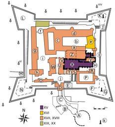 | Keywords: JasnaGora.svg Jasna Góra Monastery Częstochowa Poland Own 2008-04-14 Reytan svg version by Actam wikitable - Letter Polski English - A Brama Lubomirskich The Lubomirskis' Gate - B Brama Matki Boskiej Królowej Polski The Black Madonna the Queen of Poland Gate - C Brama Matki Boskiej Bolesnej - D Brama wałowa Bramy Jagiellońskie Brama wałowa the Jagiellonian Gate - E Sala Maryjna The Hall of the Virgin Mary - F Bastion królewski bastion Potockich The Royal Bastion The Potockis' bastion - G Pomnik o A Kordeckiego Statue of Augustyn Kordecki - H Skarbiec Vault - I Ołtarz przed szczytem Altar built on the front wall of fortification - J Bastion Św Trójcy bastion Szaniawskich The Holy Trinity's bastion the Szaniawskis' bastion - K Pomnik Jana Pawła II Statue of John Paul II - L Bastion Morsztynów The Morsztyn's bastion - M Brama Jana Pawła II brama wjazdowa The John Paul II Gate the entrance gate - N Bastion św Barbary bastion Lubomirskich The St Barbara's bastion The Lubomirskis' bastion - O Domy Muzykantów Musicians' apartments - P Wieczernik The Cenacle - R Wirydarz The pleasure garden - S Kaplica Jabłonowskich kaplica Serca Pana Jezusa The Jabłonowskis' chapel the Jesus' Heart chapel - T Kaplica Denhoffów kaplica św Pawła Pierwszego Pustelnika The Denhoff's chapel the St Paul the Hermit's chapel - U Wejście na wieżę The tower entrance - V Kaplica św Antoniego The St Anthony's chapel - W Pokoje Królewskie The Royal Rooms - X Bazylika The Basilica - Y Zakrystia The sacristy - Z Kaplica MB Częstochowskiej The Black Madonna of Częstochowa Chapel - a Sala Rycerska The Knight's Hall - b Wirydarz klasztorny The pleasure garden - c Refektarz i biblioteka The refectory and the Library - d e Klasztor Monastery - f Studnia Water well - g Muzeum 600-lecia The Museum of the 600th anniversary - h Arsenał The Arsenal - i Dziedziniec gospodarczy Household courtyard - j Dziedziniec główny Main courtyard - k Pomnik kard Stefana Wyszyńskiego Statue of Stefan Wyszyński Svg info Inkscape ValidSVG Floor plans of monasteries Jasna Góra SVG buildings |