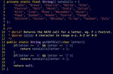 | Keywords: Java source2.svg Demonstrates a simple method to convert a character letter into a NATO call Pretty colours en Image Java source2 png 2007-04-20 Traced by User Stannered PD original en Image Java source2 png Created with Inkscape en English Wikipedia Christiancatchpole en English Wikipedia AzaToth Java source code examples |