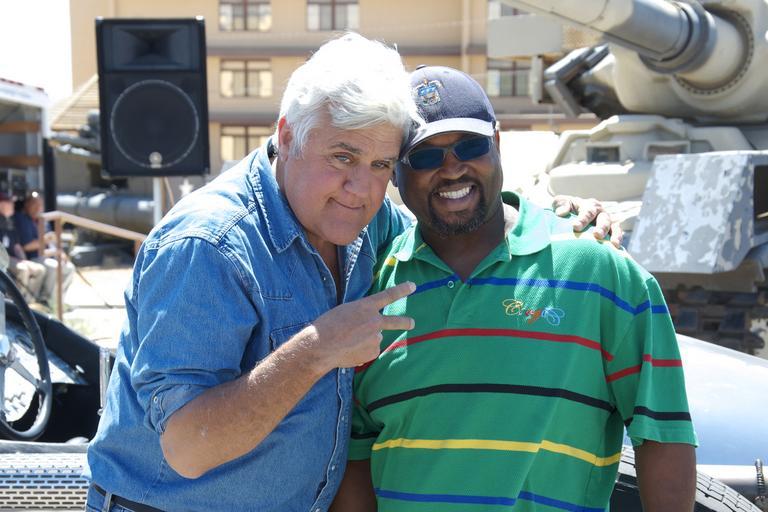 | Keywords: weed army community hospital weedarmycommunityhospital wach fort irwin fortirwin jay leno jayleno national training center nationaltrainingcenter ntc jay leno's garage jaylenosgarage wrmc meddac FORT IRWIN, California - Jay Leno, formerly the host of the "Tonight Show" visits Fort Irwin Soldiers during a brief stop-over while touring through the Mojave Desert taping a segment for his show "Jay Leno's Garage". While on post Leno was the guest of Fort Irwin Garrison Commander Col. Jonathan Braga. Leno met with Fort Irwin service members and family members as well as Weed Army Community Hospital Soldier and civilian staff Monday, June 1, and thank them for their service to the country. Leno has been a great supporter of U.S. Army service members and the National Training Command (NTC) throughout his career and has visited the installation on previous occasions. The Weed Army Community Hospital (WACH) on Fort Irwin is part of the United States Army Medical Department Activity, better known to service members by its acronym MEDDAC. The hospital staff provides 24/7 support to the National Training Center (NTC), one of the largest U.S. Army training areas in the continental United States area with over 1,000 square miles of maneuver areas, state of the art training facilities and ranges, with airspace restricted to military use. The nature of care provided at the Weed Army Community Hospital focuses on primary care, as well as occasional severe trauma. The facility has a highly trained staff of professional care providers to include specialists in general surgery, orthopedics, pediatrics, obstetrics and gynecology, internal medicine, family practice, mental health, and a flight surgeon. A physical therapist, a dietician, and optometrist complement the staff of professional health care providers. Photo by Michael Beaton, Weed Army Community Hospital Public Affairs. (Released). FORT IRWIN, California - Jay Leno, formerly the host of the "Tonight Show" visits Fort Irwin Soldiers during a brief stop-over while touring through the Mojave Desert taping a segment for his show "Jay Leno's Garage". While on post Leno was the guest of Fort Irwin Garrison Commander Col. Jonathan Braga. Leno met with Fort Irwin service members and family members as well as Weed Army Community Hospital Soldier and civilian staff Monday, June 1, and thank them for their service to the country. Leno has been a great supporter of U.S. Army service members and the National Training Command (NTC) throughout his career and has visited the installation on previous occasions. The Weed Army Community Hospital (WACH) on Fort Irwin is part of the United States Army Medical Department Activity, better known to service members by its acronym MEDDAC. The hospital staff provides 24/7 support to the National Training Center (NTC), one of the largest U.S. Army training areas in the continental United States area with over 1,000 square miles of maneuver areas, state of the art training facilities and ranges, with airspace restricted to military use. The nature of care provided at the Weed Army Community Hospital focuses on primary care, as well as occasional severe trauma. The facility has a highly trained staff of professional care providers to include specialists in general surgery, orthopedics, pediatrics, obstetrics and gynecology, internal medicine, family practice, mental health, and a flight surgeon. A physical therapist, a dietician, and optometrist complement the staff of professional health care providers. Photo by Michael Beaton, Weed Army Community Hospital Public Affairs. (Released). |