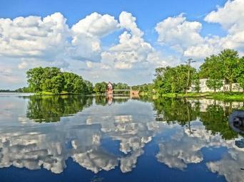 Keywords: jaz walcowy lake water reflection calm clouds glassy landscape