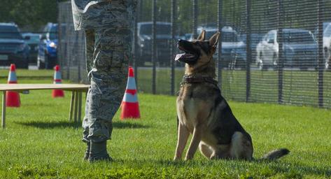 | Keywords: joint base andrews jointbaseandrews 11th wing 11thwing maryland usa animal dog outdoor pet Toni, 633rd Security Forces Squadron military working dog, looks up at his handler before they begin an obstacle course for the Joint Base Andrews National Police Week K-9 Competition at JBA, Md., May 16,2016. The competition tested dog teams in physical agility, team rapport and total control. (U.S. Air Force photo by Airman 1st Class Rustie Kramer/Released) Toni, 633rd Security Forces Squadron military working dog, looks up at his handler before they begin an obstacle course for the Joint Base Andrews National Police Week K-9 Competition at JBA, Md., May 16,2016. The competition tested dog teams in physical agility, team rapport and total control. (U.S. Air Force photo by Airman 1st Class Rustie Kramer/Released) |