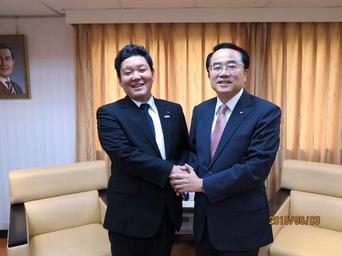 Keywords: 亞協李會長(右)接見國際青年商會世界總會(JCI) 渡康嘉副會長 aear20130808 亞東 關係協會
