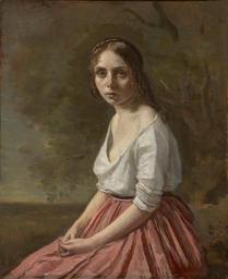 | Keywords: Jean-Baptiste-Camille Corot - 'Young Woman in a Pink Skirt', c. 1845–50.jpg Artwork Creator Jean-Baptiste-Camille Corot circa 1845 “50 Oil on canvas cm 47 8 39 3 Institution Sterling and Francine Clark Art Institute accession number 1955 541 object history credit line Acquired by Sterling and Francine Clark 1919 http //www clarkart edu/Collection/4205 Sterling and Francine Clark Art Institute PD-old-100 DEFAULTSORT Corot; Portrait female Pink Skirt 1845; Clark Art Institute Portrait paintings by Jean-Baptiste-Camille Corot Sterling and Francine Clark Art Institute Portrait paintings of women 1840s portrait paintings |