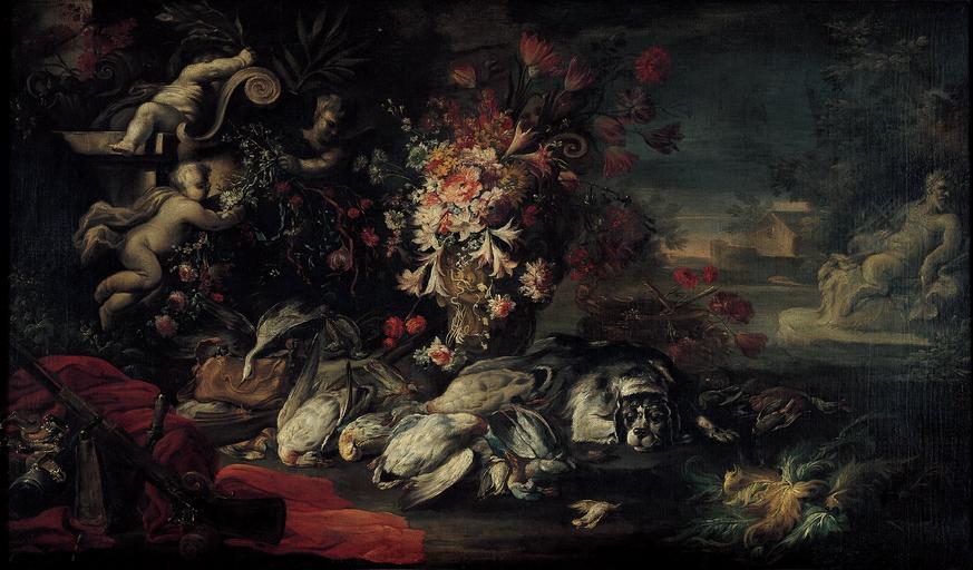 Keywords: Jean Baptiste Oudry - Death nature with shooting gear and flowers II - Google Art Project.jpg 1686 Paris 1686 1755 Beauvais 1755 Male 424053 French 1686 - 1755 /collection/fundacion-banco-santander/artwork/death-nature-with-shooting-gear-and-flowers-ii-jean-baptiste-oudry/412223/ Jean Baptiste Oudry Painter /artist/jean-baptiste-oudry/4126147/ 4126147 /collection/fundacion-banco-santander/ Fundación Banco Santander 351009 http //www fundacionbancosantander com/ 11/28/2011 3 56 42 PM /collection/fundacion-banco-santander/artwork/death-nature-with-shooting-gear-and-flowers-ii-jean-baptiste-oudry/412223/ 1715 1715 Oil on canvas 730 412223 False 1715 Complete 3/24/2012 12 52 45 AM 245 http //www fundacionbancosantander com/coleccion/ /obra/245 http //www fundacionbancosantander com/ Fundación Banco Santander Fundación Banco Santander Painting 1710 1720 City Madrid Spain Exhibition w1230 x h730 mm 1715 False 1 70666666666667 www fundacionbancosantander com Object death-nature-with-shooting-gear-and-flowers-ii-jean-baptiste-oudry Death nature with shooting gear and flowers II d 1230 Signed on the vase stand J B Oudry 1715 Oil on canvas special url_id VgE4X0BCZPNLfw PD-old-100-1923 1755 Google Art Project works by Jean-Baptiste Oudry Still-life paintings by Jean-Baptiste Oudry 1715 paintings Colección Fundación Banco Santander Basset hounds in art 18th-century allegorical paintings 1710s still life paintings