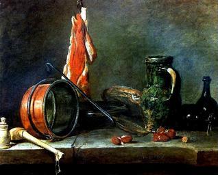 | Keywords: Jean-Baptiste Siméon Chardin031.jpg fr Un régime maigre avec outils de cuisine Huile sur toile 33 x 41 cm Paris musée du Louvre Acquis en 1852 en A Lean Diet with Cooking Utensils Oil on canvas 13 x 16 1/4 33 x 41 cm Paris the Louvre Acquired in 1852 ru «Скудная диета» с кухонной посудой Холст масло 33 х 41 см Па иж Лув П иоб етена в 1852 г here / здесьhttp //bibliotekar ru/Louvre-2/169 htm Creator Jean Siméon Chardin 1731 PD-old-100 Still life paintings by Jean Siméon Chardin 1731 Rococo still life paintings Still life paintings of tableware Oil still life paintings Jugs in art Meats in art 17th-century oil on canvas paintings in France French paintings in the Louvre - Room 39 Paintings with signatures 1850s paintings in France 1730s still life paintings Paintings by Chardin in the Louvre Pottery in French painting |