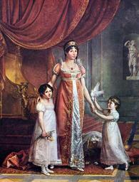 | Keywords: Jean-Baptiste Wicar 001.jpg artwork Creator Jean-Baptiste Wicar title de Porträt der Königin 1809 Oil on canvas cm 235 177 Institution Caserta The Yorck Project 10 000 Meisterwerke der Malerei DVD-ROM 2002 ISBN 3936122202 Distributed by DIRECTMEDIA Publishing GmbH http //mail wikipedia org/pipermail/wikide-l/2005-April/012195 html other versions PD-old-100 PD-Art-YorckProject DEFAULTSORT 1809; Julie Clary children Jean-Baptiste Wicar Portrait paintings in the Palace of Caserta Julie Clary Charlotte Napoléone Bonaparte Zénaïde Bonaparte House of Bonaparte 1800s paintings in Italy 1809 portrait paintings from France 19th-century family portraits of royalty 19th-century oil portraits of standing women at full length 19th-century portrait paintings in interiors 19th-century portrait paintings in Italy Carpets in portrait paintings Children with pigeons in art Family portraits of Italian rulers Females with pigeons in art Group portraits with 3 persons Neoclassical paintings in Naples Capodimonte Portrait paintings of females with flowers Portrait paintings of standing girls Portrait paintings of women wearing tiaras diadems Portrait paintings of women with birds Portrait paintings of mothers and daughters Portrait paintings with footstools Red drapery in portrait paintings Sculptures in portrait paintings Thrones in portrait paintings Women facing right and looking at viewer in art |