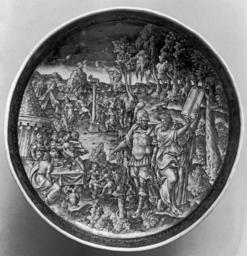 | Keywords: Jean de Court - Footed Dish with Moses Destroying the Tables of Law - Walters 44199.jpg The composition on the interior of this footed dish was derived from Bernard Salomon's woodcuts for Claude Paradin's Quadrins historique de la Bible Lyons 1553 a popular source for biblical compositions The cover is missing The monogram at the right edge identifies this as the work of the enamellist Jean de Court about whom little is known outside of his enamels ca 1555 1585 Renaissance painted enamel and gilded copper cm 10 4 25 5 accession number 44 199 18658 Paris Henry Walters Baltimore 1925 mode of acquisition unknown Walters Art Museum Henry Walters Acquired by Henry Walters 1925 place of origin Limoges France Walters Art Museum license Limoges painted enamels in the Walters Art Museum Jean Decourt Media contributed by the Walters Art Museum needs category review Painted enamel art in the Walters Art Museum Enamels of Moses |