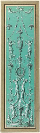 | Keywords: Jean-Guillaume Moitte - Panel of Arabesques for the Hôtel de Salm, Paris - Google Art Project.jpg 1746 1810 Jean-Guillaume 6715061 Moitte 1746 - 1810 /collection/cooper-hewitt-national-design-museum/artwork/panel-of-arabesques-for-the-hotel-de-salm-paris-jean-guillaume-moitte/6715062/ 18198 Jean-Guillaume Moitte /artist/jean-guillaume-moitte/6807497/ 6807497 /collection/cooper-hewitt-national-design-museum/ Cooper-Hewitt National Design Museum 3644669 http //www cooperhewitt org/ 3/11/2012 5 35 54 PM /collection/cooper-hewitt-national-design-museum/artwork/panel-of-arabesques-for-the-hotel-de-salm-paris-jean-guillaume-moitte/6715062/ 1785 1785 Pen and black ink brush and gray turquoise-blue and white gouache traces of black chalk on toned paper ruled border in pen and black ink lined with paper with ruled border Leon Decloux 430 6715062 False 1785 3/25/2012 5 42 58 AM 1911-28-219 http //collection cooperhewitt org/view/objects/asitem/id/18198 Purchased for the Museum by the Advisory Council Drawing 1780 1790 w101 x h430 cm 1785 False 0 30078125 Object panel-of-arabesques-for-the-hotel-de-salm-paris-jean-guillaume-moitte Panel of Arabesques for the Hôtel de Salm Paris p 101 Crosscurrents French and Italian Neoclassical Drawings and Prints Cooper-Hewitt Museum Washington D C Smithsonian Institution Press l978 no 74Kleine Kunstgeschichte des Europaischen Ornaments seit den Fruhen nenzeit 1400-1900 Gunter Irmscher Darmstadt Wissenschaftliche Buchgess schaft l984 T 182 43 x 10 1 cm 16 15/16 x 4 in 13 7 x 46 6 mount Mat 55 9 x 40 6 cm 22 x 16 in Crosscurrents French and Italian Neoclassical drawings and prints from the Cooper-Hewitt Museum the Smithsonian Institution's National Museum of Design 1978The Cooper-Hewitt Collections A Design Resource New York Cooper-Hewitt Museum 1991-1992 exhibited at third rotation 11/04/1991 - 03/09/1992 Pen and black ink brush and gray turquoise-blue and white gouache traces of black chalk on toned paper ruled border in pen and black ink lined with paper with ruled border Toned laid paper lined with paper with ruled border Leon Decloux Signed on the mount in pen and black ink at lower right Moitte sculpteur 1785 special url_id JQG0rTyRnS162A PD-old-100-1923 1810 Collections of the Cooper “Hewitt Smithsonian Design Museum Jean-Guillaume Moitte Google Art Project works by Jean-Guillaume Moitte Hôtel de Salm Green objects Google Art Project works in Cooper-Hewitt Smithsonian Design Museum Arabesque art |