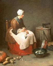 | Keywords: Jean Siméon Chardin - Woman Peeling Turnips - WGA04764.jpg Artwork Creator Jean Siméon Chardin ca 1740 Oil on canvas size cm 46 2 37 Institution Alte Pinakothek 2a http //www pinakothek de/jean-baptiste-simeon-chardin/die-ruebenputzerin Bayerische Staatsgemäldesammlungen http //www pinakothek de/sites/default/files/imagecache/thumb_lightbox_light/gemaelde/original/4465_11704 jpg image object history langSwitch From the Zweibrücken Gallery Aus der Zweibrücker Galerie credit line accession number 1090 WGA link 4764 http //www wga hu/art/c/chardin/2/03peelin jpg http //www wga hu/html/c/chardin/2/03peelin html PD-old-100-1923 painting genre French 1701-1750 DEFAULTSORT Chardin Jean Simeon; kitchen scene with a girl peeling turnips 1740 Bayerische Staatsgemäldesammlungen Kitchen scenes with girl peeling turnips by Jean Siméon Chardin 18th-century paintings in the Alte Pinakothek French paintings in the Alte Pinakothek 1740s paintings in Germany 18th-century oil on canvas paintings in Germany Paintings in the Alte Pinakothek flat list 1740s paintings from France WGA form painting WGA type genre WGA School French WGA time period 1701-1750 |