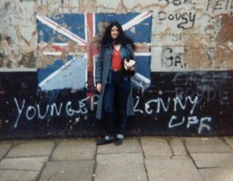 Keywords: Jeanne Boleyn sandy row mural.jpg Young woman at old loyalist mural Sandy Row Belfast own 1981-04 Jeanne boleyn Murals in Belfast Sandy Row Belfast Category Ulster Freedom Fighters April 1981 in Northern Ireland 1981 in Belfast Cc-zero