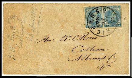 | Keywords: Jeffdav3.jpg en Confederate States of America letter and Postage stamp 1863 CSA Post Office<br/>http //arago si edu/index asp con 2 cmd 1 id 159216 img 1 pg 1 Smithsonian National Postal Museum<br/>Photo image obtained/rendered by Gwillhickers Confederate States of America Post Office 1863-04-26 PD-old-100 1863 postmarks April 1863 Jefferson Davis on stamps Richmond in the American Civil War Stamps of the Confederate States of America Postal history of the American Civil War Postal history of the United States |