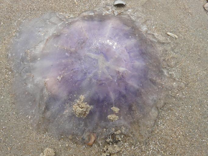Keywords: jellyfish blue jellyfish cyanea lamarckii beach washed up on dead flag jellyfish wabbelig meduse nettle schirmqualle wirbellos violet blue sand beach sea dangerous sea animal ocean transparent north sea close mollusk salt water jellyfish