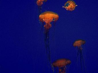 Keywords: jellyfish jellies blue deep blue golden yellow marine ife underwater creatures aquatic swimming animals aquarium