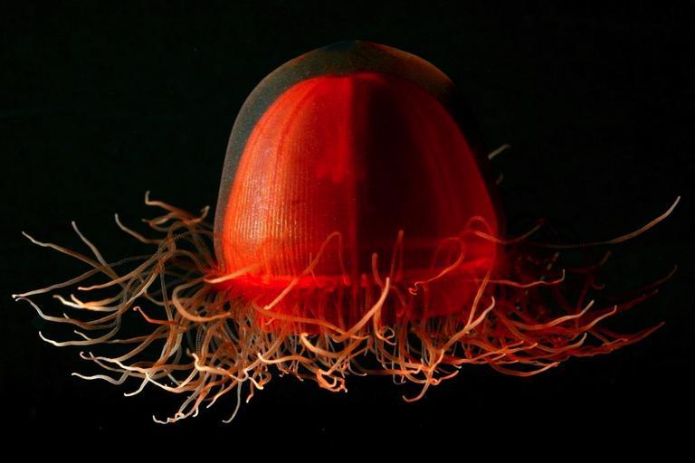 Keywords: jellyfish life red unique beautiful close-up macro sea ocean water underwater