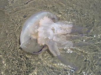 Keywords: Jellyfish Washed Ashore.jpg Jellyfish washed ashore at the ionian coast in Italy Angeschwemmte Qualle an der ionischen Küste in Italien 2006-04-29 own assumed AlMare Rhizostoma pulmo