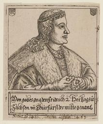 | Keywords: Jenechin, Balthasar- Friedrich II. Saxony.jpg Friedrich II - 1560 1621 engraving 9 3 7 5 institution Herzog Anton Ulrich-Museum object history ProvenanceEvent <1800 acquisition accession number Lugt 291 291a http //www virtuelles-kupferstichkabinett de/index php selTab 3 currentWerk 20485 PHPSESSID 541r7h3irpoj4l5b7jk70d15e6 virtuelles-kupferstichkabinett de PD-old-100-1923 DEFAULTSORT Anonymous Frederick II Elector of Saxony engraving Herzog Anton Ulrich-Museum Frederick II Elector of Saxony Engravings in the Herzog Anton Ulrich-Museum Engraved portraits of men at bust length Engravings with fur Fur collars in art Male portraits with fur clothing 15th-century fur fashion |
