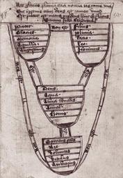 | Keywords: Jerome-of-Prague Scutum-fidei-Christianae 15thc.png Version of the Scutum Fidei or Shield of the Trinity diagram here captioned Scutum fidei Christianae or Shield of the Christian faith ; the general diagram has been around since the early 13th century but this particular variant was devised by Jerome of Prague ca the early 15th century There are four nodes and six connecting links as in the standard diagram but each node has five separate captions so that this illustration contains five parallel diagrams all with the same overall central-positive / peripheral-negative structure ;1st diagram standard Scutum Fidei or Shield of the Trinity diagram with Deus God in center Pater Father Filius Son Spiritus sanctus Holy Spirit in outer nodes See article en Shield of the Trinity for details ;2nd diagram aqua water in center glacies ice pluvia rain nix snow in outer nodes ;3rd diagram anima soul in center memoria memory ratio reason voluntas will in outer nodes ;4th diagram animal animal in center aquilla eagle leo lion vitulus calf in outer nodes ;5th diagram homo man human in center Augustinus Augustine Jeronimus Jerome Ambrosius Ambrose in outer nodes Versions of this illustration in other sources apparently have intellectus in place of ratio asinus in place of vitulus rationalis anima in place of anima rationalis and/or correct spelling aquila in place of typo aquilla etc Some of the analogies to the Trinity in the second through fifth diagrams are theologically controversial and were part of the evidence for heresy accusations against Jerome of Prague Excerpt from manuscript MS Prague NK ČR V E 28 folio 130r held by the National Library of the Czech Republic as reproduced in the article Scutum fidei christianae The Depiction and Explanation of the Shield of Faith in the Realistic Teaching of Jerome of Prague in the Context of His Interpretation of the Trinity by Ota Pavlíček in The Bohemian Reformation and Religious Practice 9 2014 edited by Zdenek V David and David R Holeton; see http //brrp org/vol9 html http //brrp org/vol9contents html http //brrp org/proceedings/brrp9/pavlicek pdf ISBN 978-80-7007-416-9 15th-century manuscript Jerome of Prague's original diagram was created before 1410 Unknown 15th-century scribe based on works of Jerome of Prague PD-old-100 Jeroným Pražský Shield of the Trinity |