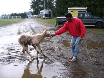 | Keywords: mud horses palomino colt outdoor The colt pictured, Bear, was two weeks old in this picture, and was on his way to the indoor arena. This was his first time out of his stable and he fought stubbornly all the way there and got rather muddy in the process. CC0 waiver: To the extent possible under law, I waive all copyright and related or neighboring rights to this work. The colt pictured, Bear, was two weeks old in this picture, and was on his way to the indoor arena. This was his first time out of his stable and he fought stubbornly all the way there and got rather muddy in the process. CC0 waiver: To the extent possible under law, I waive all copyright and related or neighboring rights to this work. |